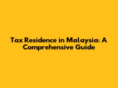 How to Determine Your Tax Residence in Malaysia