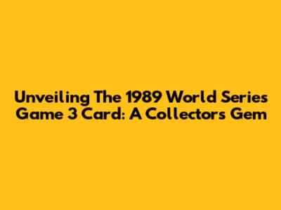 Unveiling The 1989 World Series Game 3 Card: A Collector's Gem