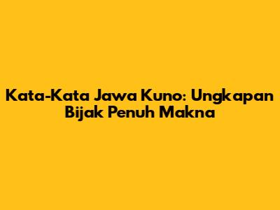 Kata-Kata Jawa Kuno: Ungkapan Bijak Penuh Makna