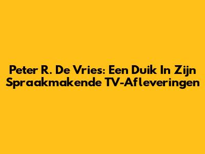 Peter R. De Vries: Een Duik In Zijn Spraakmakende TV-Afleveringen