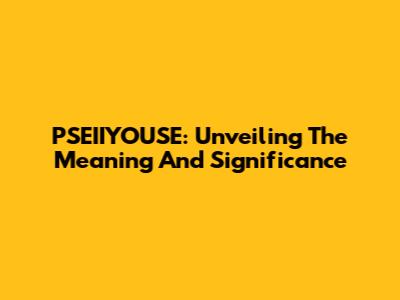 PSEIIYOUSE: Unveiling The Meaning And Significance