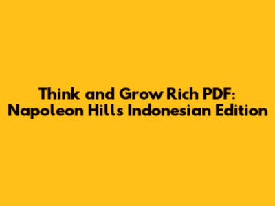 Hey guys! Are you on the hunt for Napoleon Hill's Think and Grow Rich in PDF format, especially the Indonesian edition? You've come to the right place! This book is a timeless classic, and having it in Indonesian can be a game-changer for many. Let's dive into why this book is so powerful, where you can find the PDF, and how to make the most of it. This book has transformed countless lives, and having access to it in Indonesian opens up a world of possibilities for those who prefer reading in that language. Think and Grow Rich isn't just another self-help book; it's a comprehensive guide to achieving success in all areas of life. Napoleon Hill dedicated over two decades to studying the habits and philosophies of some of the most successful people of his time, including Andrew Carnegie, Henry Ford, and Thomas Edison. The result is a set of principles that, when applied, can lead to remarkable achievements.