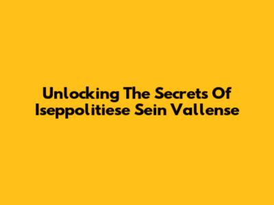 Unlocking The Secrets Of Iseppolitiese Sein Vallense