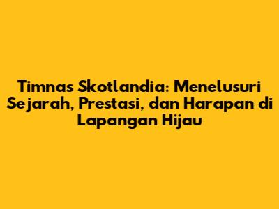 Prestasi timnas Skotlandia telah mengukir namanya dalam sejarah sepak bola dunia. Meskipun belum meraih gelar juara, partisipasi mereka dalam turnamen besar dan kemenangan melawan tim kuat menunjukkan kualitas sepak bola Skotlandia. Pemain-pemain bintang yang telah mengharumkan nama negara juga menjadi bukti bahwa Skotlandia memiliki potensi besar di dunia sepak bola.