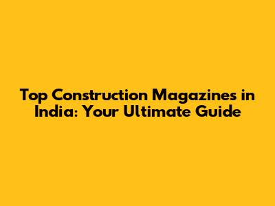 Alright, let's get to the good stuff! Here's a rundown of the top construction magazines in India that you absolutely need to know. These publications are a must-read for anyone serious about the construction game.
