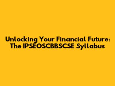 Unlocking Your Financial Future: The IPSEOSCBBSCSE Syllabus
