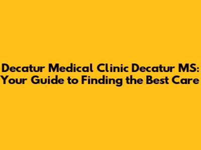 Okay, let's talk about finding some actual Decatur medical clinic in Decatur, MS. Unfortunately, I can't give you specific recommendations without knowing your specific needs and insurance. However, I can give you some general strategies for finding clinics in the area: