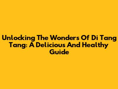 Unlocking The Wonders Of Di Tang Tang: A Delicious And Healthy Guide
