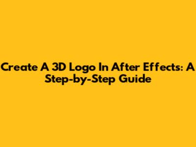 Create A 3D Logo In After Effects: A Step-by-Step Guide