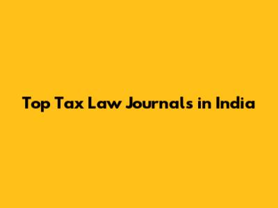 Prominent Tax Law Journals in India