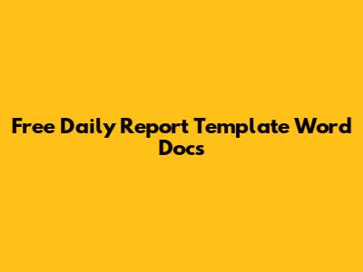 Free Daily Report Template Word Docs