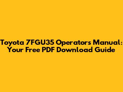 Where to Find the Toyota 7FGU35 Operator's Manual PDF (Free and Legally!)