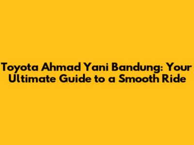 Hey there, car enthusiasts! Are you on the hunt for a new Toyota or need top-notch service in Bandung? Look no further! This comprehensive guide dives deep into everything you need to know about Toyota Ahmad Yani Bandung. We'll cover everything from their amazing range of vehicles to the exceptional services they offer, ensuring you're well-equipped to make informed decisions. Let's get started, shall we?