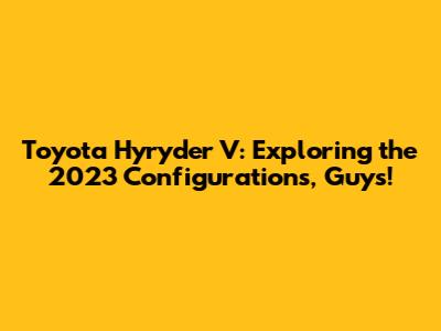 Alright folks, let's dive deep into the 2023 Toyota Urban Cruiser Hyryder V configurations, shall we? If you're eyeing this stylish and practical SUV, you've come to the right place. Toyota has really outdone themselves with the Hyryder, offering a fantastic blend of technology, comfort, and efficiency. We're going to break down what makes the V trim special and what your options are. So, buckle up, grab a cuppa, and let's get into the nitty-gritty of making your Hyryder V truly yours. We'll cover everything from the powertrain choices to the interior tech that makes this car a joy to drive. Toyota is known for its reliability, and the Hyryder is no exception, but understanding the specific configurations helps you pick the perfect variant that matches your lifestyle and budget. Whether you're a city dweller or someone who enjoys occasional weekend getaways, the Hyryder V is designed to impress.