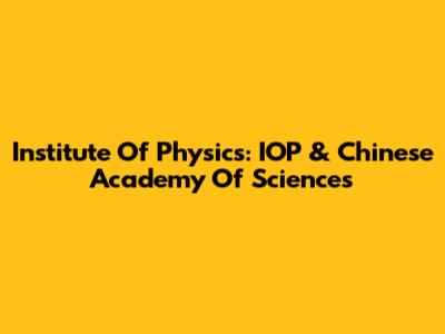 Institute Of Physics: IOP & Chinese Academy Of Sciences