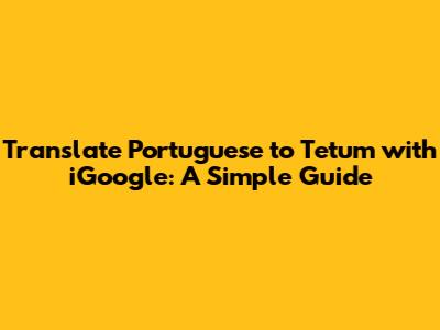 - How to Use It: Simply go to the Google Translate website, select Portuguese as the source language and Tetum as the target language, type in your text, and voila! You'll get a translation in seconds.