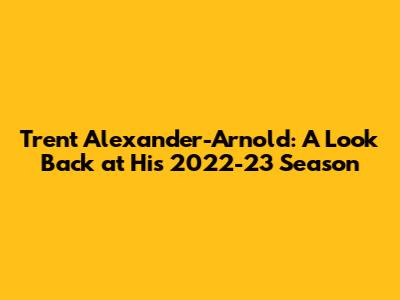 What a ride it was for Trent Alexander-Arnold during the 2022-23 season, guys! This young Liverpool star has been a consistent presence on the pitch, and his performances last season were a real talking point. We're going to dive deep into what made his 2022-23 campaign so noteworthy, looking at his incredible assists, his evolving role, and those moments that had everyone on the edge of their seats. From crunching tackles to those signature pinpoint passes, Trent's season was packed with action, and understanding his journey during this period gives us some serious insight into his development as one of the premier full-backs in the game today. So, buckle up as we break down Trent Alexander-Arnold's 2022-23 season!