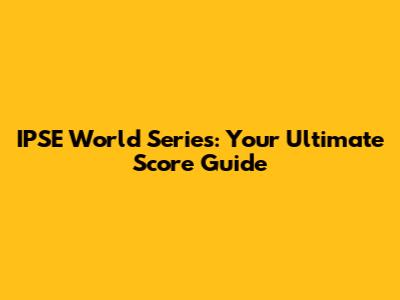 IPSE World Series: Your Ultimate Score Guide