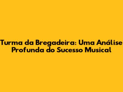 O segredo reside na combinação de talento, trabalho duro e, acima de tudo, na paixão pela música e pelo público. A Turma da Bregadeira não apenas produz músicas de qualidade, mas também constrói um relacionamento duradouro com seus fãs, baseados na confiança, no respeito e na celebração. Eles entendem que o brega é mais do que um gênero musical; é um estilo de vida, uma forma de expressão e uma ferramenta de conexão com as emoções. A Turma da Bregadeira abraça essa essência e a traduz em músicas que tocam o coração e embalam a alma. O sucesso da Turma da Bregadeira não é apenas sobre números e vendas; é sobre a capacidade de tocar vidas e deixar uma marca na história da música brasileira. É sobre a alegria de celebrar a vida, o amor, a saudade e a esperança por meio da música. É sobre construir uma comunidade unida pela paixão pelo brega e pela Turma da Bregadeira. E é por isso que eles continuam a conquistar o público e a inspirar novos artistas a seguir seus passos. A Turma da Bregadeira é muito mais do que uma banda; é um fenômeno musical e cultural que veio para ficar.