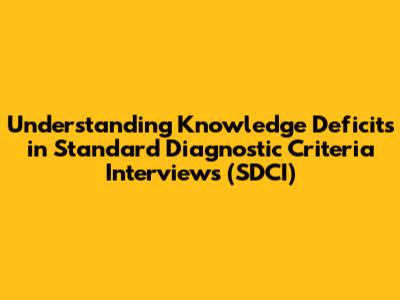 In the context of healthcare, a knowledge deficit refers to a gap in a person's understanding of specific information related to their health condition, treatment, or care. Now, when we bring in SDCI, it gets a bit more specific. SDCI, or Standard Diagnostic Criteria Interviews, are structured interviews used by healthcare professionals to diagnose mental health conditions. These interviews follow a standardized format and criteria, ensuring that the diagnosis is consistent and reliable. So, a knowledge deficit in SDCI essentially means that an individual lacks the necessary understanding about the diagnostic criteria, the interview process, or their own symptoms to accurately participate in the interview.