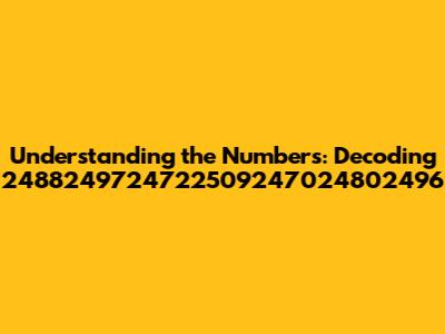 Hey guys! Ever stumbled upon a string of numbers that looks like a secret code? Today, we're diving deep into the mysterious sequence: 2488249724722509247024802496. Now, I know what you're thinking – "What on earth are all these digits?" Well, buckle up, because we're going to unravel this numerical enigma. This isn't just a random jumble of numbers; it's likely a representation of something specific, and understanding its context is key to unlocking its meaning. We'll explore various possibilities, from product IDs and serial numbers to codes in specialized fields. Our goal is to give you a comprehensive overview, breaking down what this sequence could represent and how you might go about identifying its true purpose. So, whether you're a curious mind, a tech enthusiast, or just someone who encountered this number and needs answers, you've come to the right place. Let's get started on deciphering this code together!