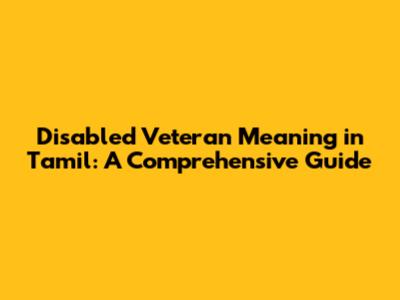 Alright, let's break down the core concept. In simple terms, a disabled veteran is someone who served in the armed forces (Army, Navy, Air Force) and sustained an injury or illness during their service that has resulted in a disability. This disability can range from physical injuries like loss of limb or mobility issues to mental health conditions like PTSD (Post-Traumatic Stress Disorder). The severity of the disability determines the level of support and benefits the veteran is eligible for. Now, when we translate this into Tamil, the most common phrase used is something along the lines of 'ஊனமுற்ற முன்னாள் படைவீரர்' (Ūṉamutṟa mūnnaḷ paṭaivīrar). This directly translates to 'disabled ex-serviceman.' The term 'ஊனமுற்ற' (Ūṉamutṟa) specifically signifies the presence of a disability. Understanding this basic translation is the first step towards accessing the right resources and support. Remember, it's not just about the words; it's about the experiences, sacrifices, and the ongoing challenges these individuals face after their service. The government, along with various organizations, plays a crucial role in ensuring these heroes receive the care and assistance they deserve. This is why awareness of veterans benefits Tamil Nadu is so important. These benefits are specifically designed to address the unique needs of disabled veterans, helping them lead fulfilling lives despite their challenges.
