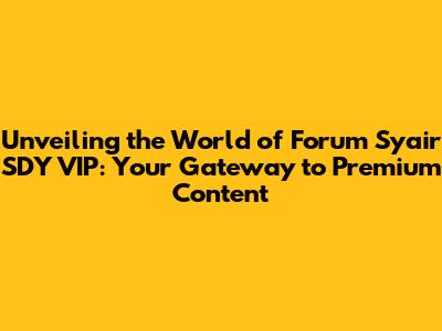 Hey guys! Ever wondered what the buzz is all about with Forum Syair SDY VIP? Well, buckle up because we're about to dive deep into this exciting world. We'll explore what it is, why it's so popular, and how you can get in on the action. Think of it as your all-access pass to a treasure trove of exclusive content, insights, and a community of like-minded enthusiasts. Get ready to level up your experience and discover the secrets behind the SDY VIP forums!