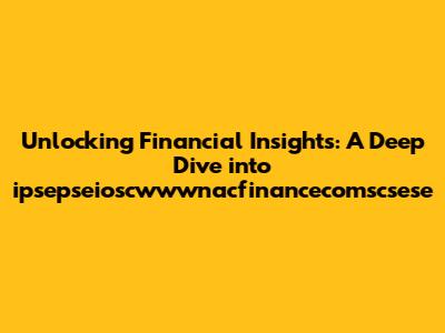 Hey guys! Let's dive into something that might sound a bit like a mouthful at first: ipsepseioscwwwnacfinancecomscsese. Don't worry, we're going to break it down and make it super easy to understand. Think of it as a key, a lens, or a portal – whatever helps you wrap your head around it – that helps us understand the financial world better. This is a journey to uncover how we can improve our financial understanding. This complex subject often acts as a source of confusion among investors and analysts. We're talking about a web of financial concepts, strategies, and data, all working together to help us make smarter decisions. So, grab your favorite drink, settle in, and let's explore this intricate landscape, breaking down complex jargon, and turning them into digestible insights. Our goal is simple: to make the world of ipsepseioscwwwnacfinancecomscsese accessible and, dare I say, even exciting!