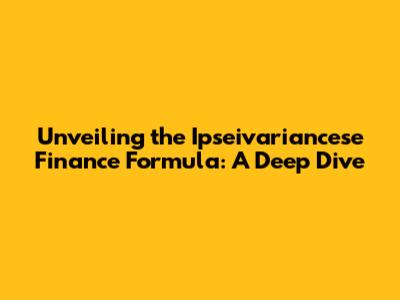 What Exactly is the Ipseivariancese Finance Formula?