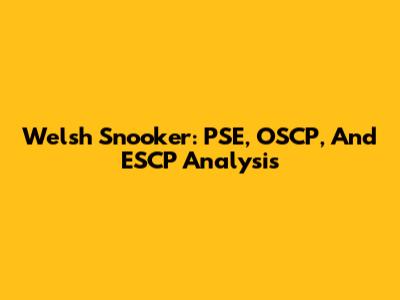 Welsh Snooker: PSE, OSCP, And ESCP Analysis