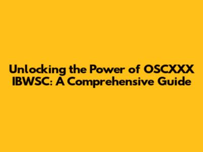 Staying Updated: The Latest Developments in OSCXXX IBWSC