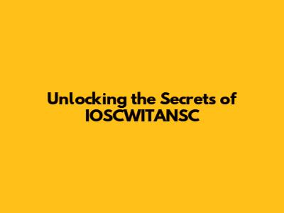 Hey everyone! Today, we're diving deep into a topic that might sound a bit mysterious at first: IOSCWITANSC. What exactly is it, and why should you care? Let's break it down, guys, and uncover the power behind this intriguing concept. We're going to explore its origins, its applications, and how understanding IOSCWITANSC can seriously level up your game in whatever field you're working in. Get ready to have your mind blown!