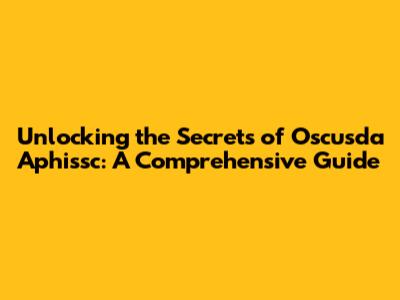 Diving into the Fundamentals: What Exactly is Oscusda Aphissc?