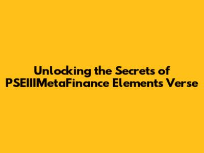 What Exactly is PSEIIIMetaFinance Elements Verse?