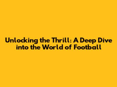 The Global Phenomenon: Football's Universal Appeal