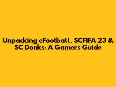 Hey guys, let's dive into the world of gaming and break down some popular terms and titles that are buzzing around the community! We'll be talking about eFootball, SCFIFA 23, and the intriguing concept of SC Donks. This guide is for everyone, whether you're a seasoned gamer or just starting out. We'll explore what these terms mean, what they represent, and how they fit into the broader gaming landscape. So, grab your controllers, and let's get started!