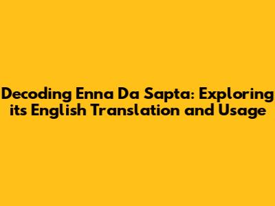 The Core Meaning of 'Enna Da Sapta'