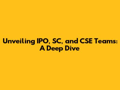 Hey everyone! Ever wondered about the inner workings of different teams like IPO, SC, and CSE? Well, you're in the right place! We're going to break down these acronyms, explore what these teams do, and give you the inside scoop on how they contribute to the bigger picture. Whether you're a student, a professional, or just someone curious about the tech world, this article is for you. So, buckle up, grab a coffee (or your favorite beverage), and let's dive into the fascinating world of IPO, SC, and CSE teams!