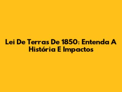 Lei De Terras De 1850: Entenda A História E Impactos