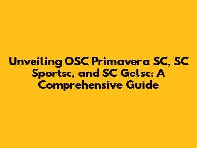 Hey there, sports fanatics and enthusiasts! Today, we're diving deep into the world of OSC Primavera SC, SC Sportsc, and SC Gelsc. Get ready to explore everything you need to know about these organizations, their history, their achievements, and their impact on the sporting community. We'll be uncovering the details that make them unique and the contributions they've made to the world of sports. Whether you're a seasoned follower or just starting to explore, this guide is designed to provide you with a complete and engaging overview. So, buckle up, because we're about to embark on a thrilling journey through the landscapes of these three influential entities. Let's get started, shall we?