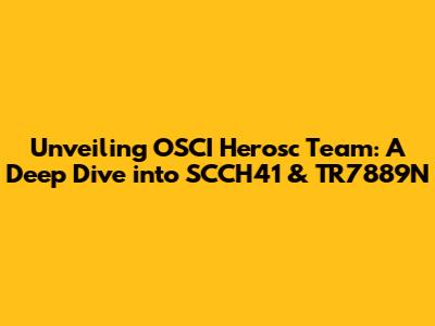 Let's start by addressing the elephant in the room: What exactly is the OSCI Herosc Team? Unfortunately, without further context, it's a bit like trying to solve a puzzle with missing pieces. OSCI, in many contexts, can stand for a variety of things, from the Open Systems Computing Initiative to other more specific organizational names. Similarly, 'Herosc' might refer to a specific team or a project designation within a larger organization. The key here is specificity. To truly understand the OSCI Herosc Team, we'd need to know their domain – are they focused on software development, hardware engineering, data analysis, or something entirely different? Without that crucial piece of information, we have to proceed with the information given, the SCCH41 and TR7889N projects.