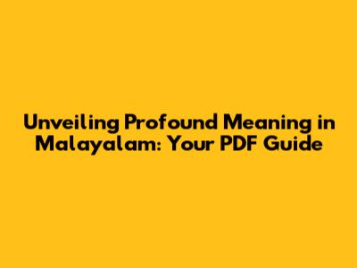 Hey guys! Ever wondered about the profound meaning in Malayalam? Malayalam, the beautiful language spoken in Kerala, South India, is rich with layers of meaning, cultural context, and a depth that often gets lost in translation. If you're on a quest to truly understand the essence of Malayalam words, phrases, and concepts, you're in the right place! This guide is all about helping you dive deep into the world of Malayalam and unlock the treasures hidden within. We'll be exploring everything from the nuances of everyday language to the complexities of literary works. And the best part? We'll be framing this discussion around how you can leverage PDF resources to boost your understanding. Let's get started on this exciting journey of linguistic and cultural exploration! This guide is designed to be your go-to resource for understanding the complexities of Malayalam. We'll explore the significance of Malayalam in Kerala, delve into the intricacies of vocabulary and grammar, and even touch upon the rich world of Malayalam literature. Ready to embark on this journey? Let's dive in!