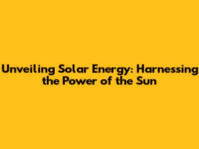 What Exactly is Solar Energy?