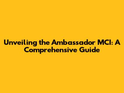 Hey guys! Ever heard of the Ambassador MCI? If you're scratching your head, no worries! This guide is designed to unravel everything you need to know about it. We're diving deep into what the Ambassador MCI is, what it does, and why it's a topic that's gaining traction. Whether you're a seasoned pro or just starting out, this article is packed with info to get you up to speed. Let's get started!