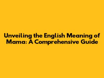 Hey there, language enthusiasts! Ever wondered about the English meaning of "mama"? You've stumbled upon the right place! In this comprehensive guide, we'll dive deep into the heart of this heartwarming word, exploring its origins, nuances, and cultural significance. Get ready to embark on a linguistic journey that will not only enrich your vocabulary but also touch your heart. Let's get started, shall we?