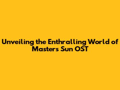 Hey music lovers, and welcome! Today, we're diving deep into the magical soundtrack that brought the hit K-drama Master's Sun to life. You know, the one that had us all hooked with its spooky romance and heartwarming moments? Yeah, that one! We're gonna explore the amazing OST (Original Soundtrack), also known as "Last One," that perfectly captured the show's blend of chills and feels. Get ready to reminisce and maybe discover some new favorite tunes. The Master's Sun OST wasn't just background music; it was a key character, setting the mood and amplifying the emotional impact of every scene. So, let's break down this awesome soundtrack and see what makes it so special.