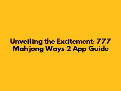 Decoding the Gameplay and Features of the 777 Mahjong Ways 2 App