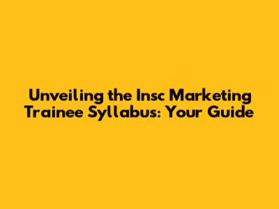Unpacking the Insc Marketing Trainee Syllabus: Key Learning Objectives