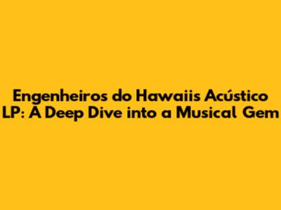 Hey music lovers! Ever stumbled upon an album that just grabs you from the first chord? For many of us, that album is Acústico MTV by Engenheiros do Hawaii. This live acoustic album isn't just a collection of songs; it's an experience. It's a journey through the band's greatest hits, reimagined with a stripped-down, intimate feel that's both nostalgic and refreshingly new. Let's dive deep into this musical gem, exploring its history, the magic behind its creation, and why it continues to resonate with fans, even years after its release.