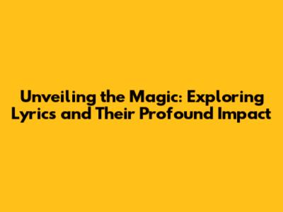The Anatomy of a Great Lyric: Decoding the Secrets